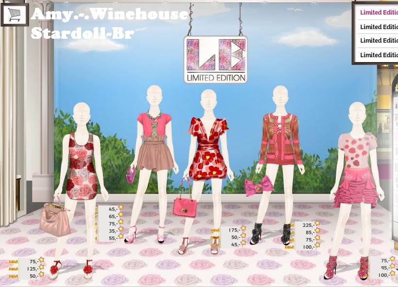 Décima Primeira L.E. : Essa com certeza é a coleção mais romantica, o Stardoll decidiu deixar as flores e os tons pastéis tomarem conta da coleção, o tom mais próximo do preto que tinha nas peças era o cinza e mesmo assim quase não se via. Foram três pisos que mesmo tendo mais de 2000 exemplares acabaram em muito pouco tempo, o item mais barato era um enfeite de cabelo por 30 Stardollars, mas também existia ocúlos e tiaras de flores por 35, e é claro, vestidos deslumbrantes por 250.